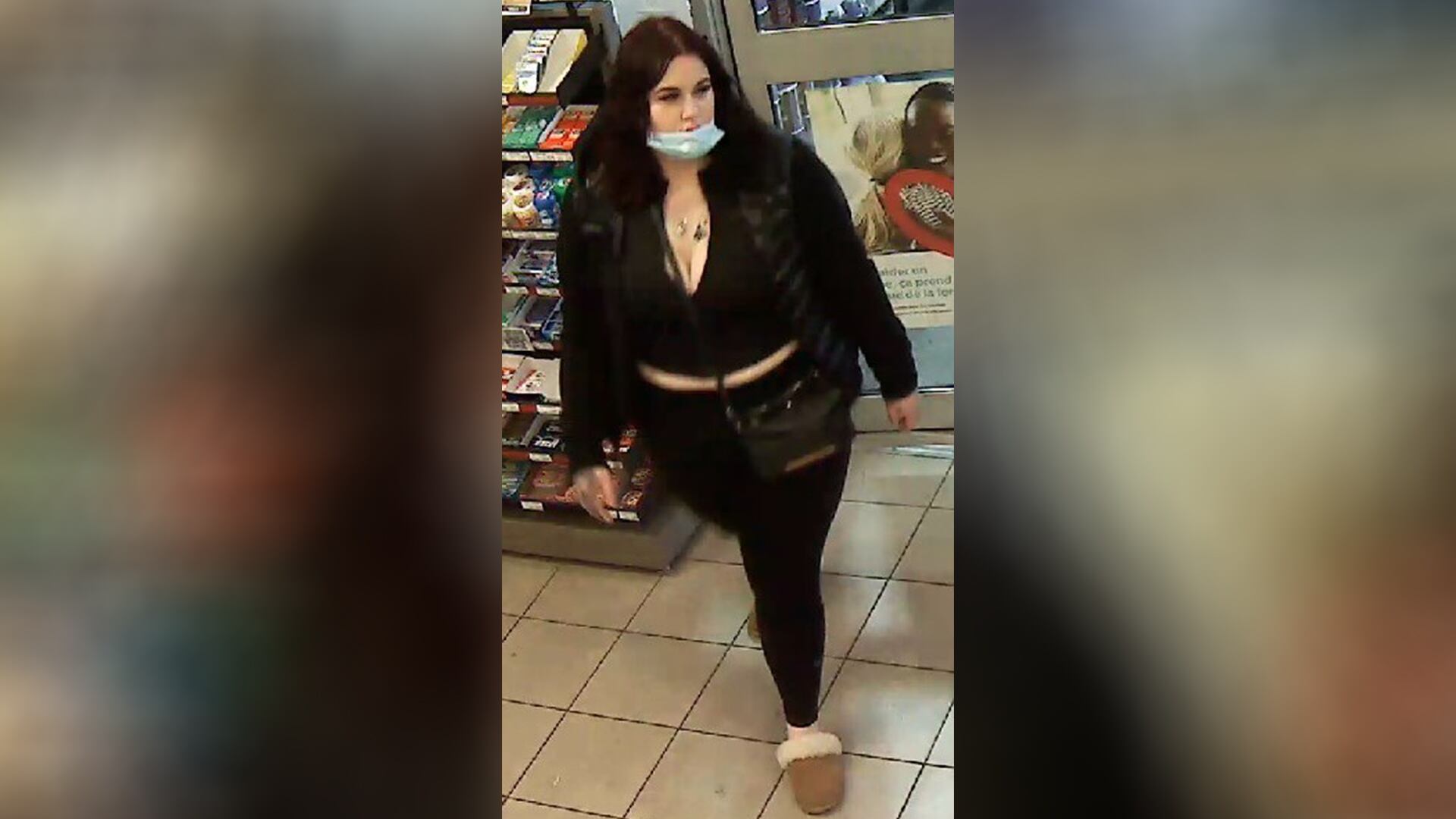 Lors d’un des événements, la suspecte était vêtue d’une veste hybride noire à manches longues avec un logo noir sur le bras gauche s’apparentant à celui de la marque Rudsak, d’un pantalon noir et de souliers beiges avec fourrure de style Ugg. «Elle portait également un sac à bandoulière noir et un masque médical bleu.»