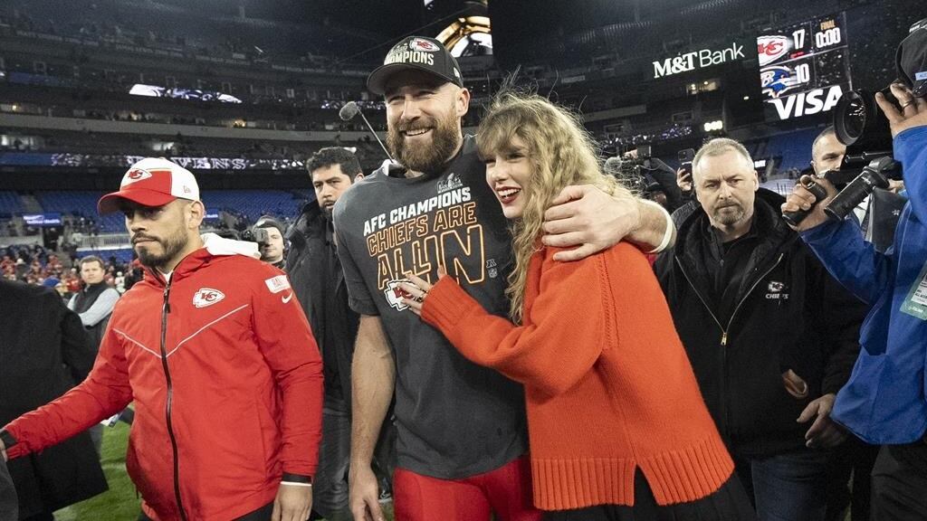 Taylor Swift est dans une relation amoureuse très publique avec Kelce. L'équipe de celui-ci, les Chiefs de Kansas City, affronte les 49ers de San Francisco, le 11 février à l'occasion du 58e Super Bowl, qui couronnera les nouveaux champions du football de la NFL.