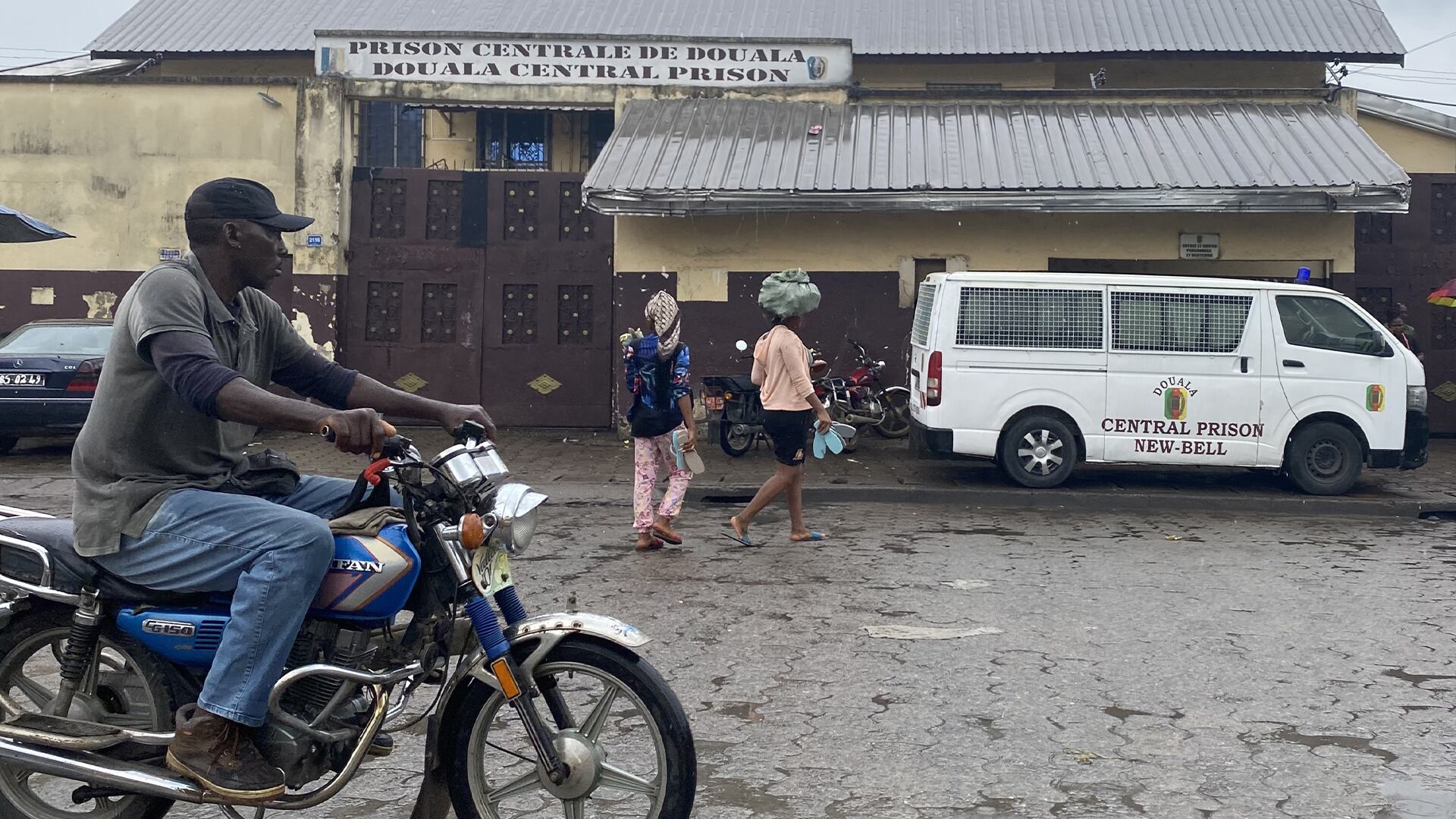À l’extérieur du parloir, un vendeur circule dans la cour de la prison avec un pot de ragoût de Ndolé, composé de feuilles amères et de noix. Un homme à proximité gémit, marchant d’avant en arrière dans un couloir de terre recouvert d’un centimètre de pluie ce matin-là.