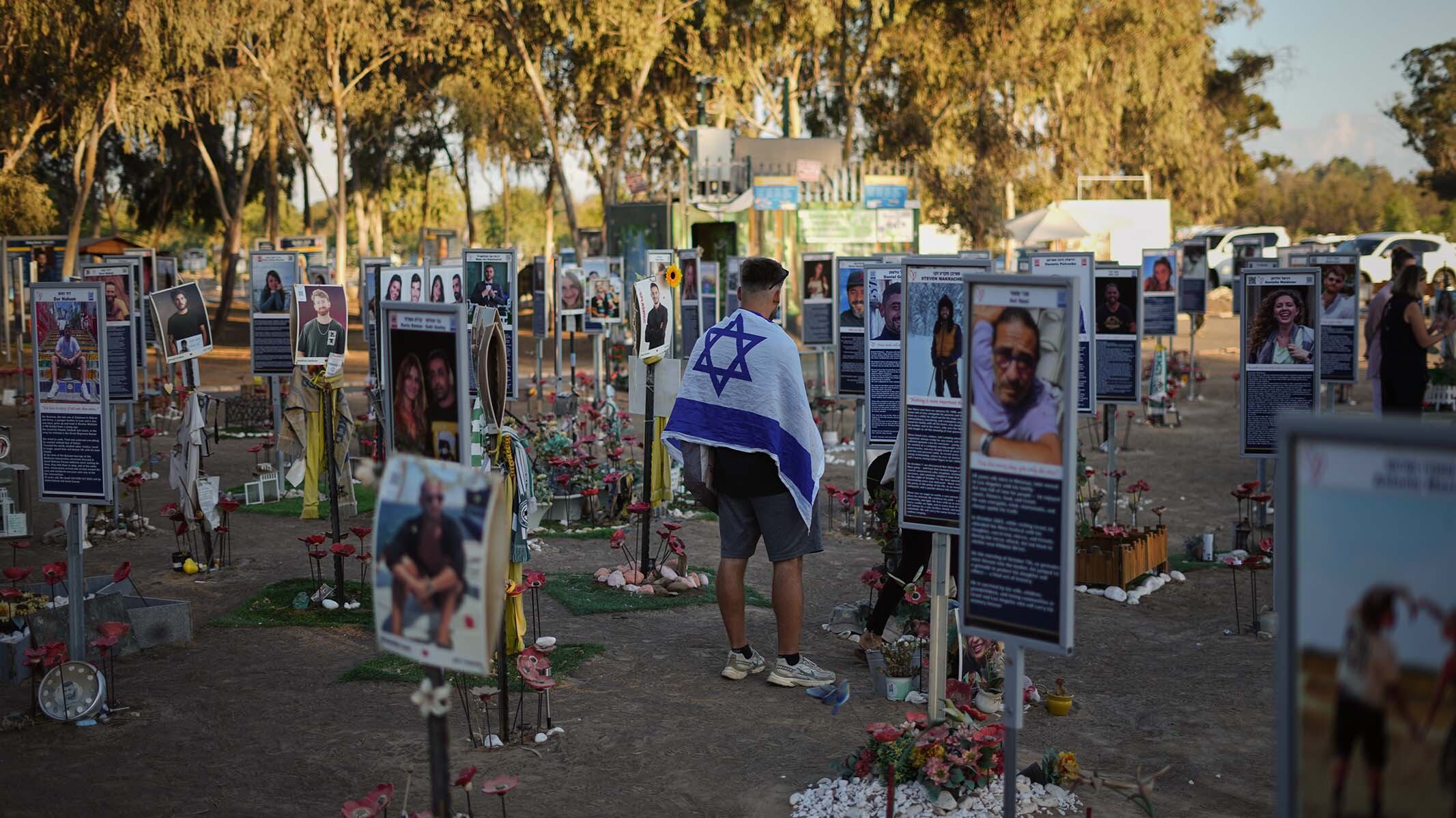 À Réïm, sur le site du festival de musique Nova, où plus de 370 personnes ont été tuées par des commandos du Hamas, des dizaines de proches et d’amis des victimes ont observé une minute de silence à 06h29, heure précise du début de l’attaque du mouvement islamiste palestinien sur le sud d’Israël.