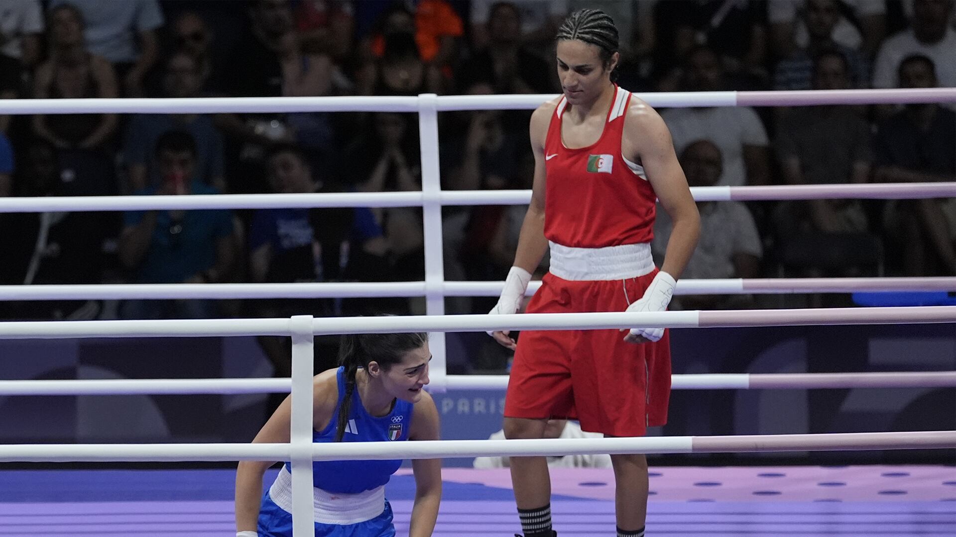 La jeune femme de 25 ans est montée sur le ring de l'aréna Paris Nord sous les acclamations, mais la foule a été déconcertée par la fin soudaine du combat. Khelif, qui combat à nouveau samedi, n'a pas parlé aux journalistes.